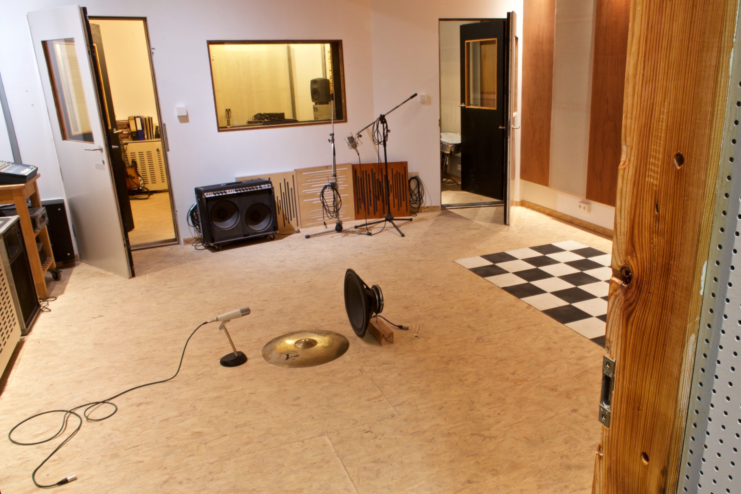 You enter via the garage, making it easy to unload your gear directly into the Main Room (30m²), which features acoustic treatment, a PA system, drums, and a guitar and bass amp, which can also be used for rehearsals. Please contact me for availability.